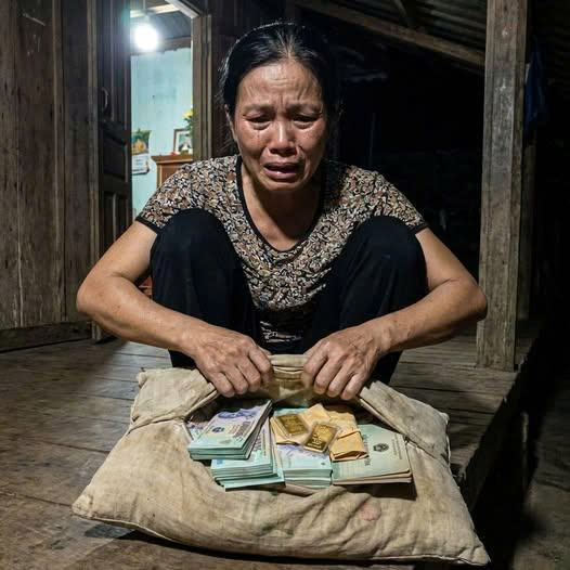 “Thảo?” Chồng Thảo cất tiếng gọi, giọng anh khàn đặc sau hậu sự. Anh bước đến gần, thấy những xấp tiền, vàng miếng nhỏ và các cuốn sổ tiết kiệm cũ kỹ nằm ngổn ngang trên chiếu. Anh nhíu mày, khó hiểu. “Em làm gì vậy? Mấy cái này…”