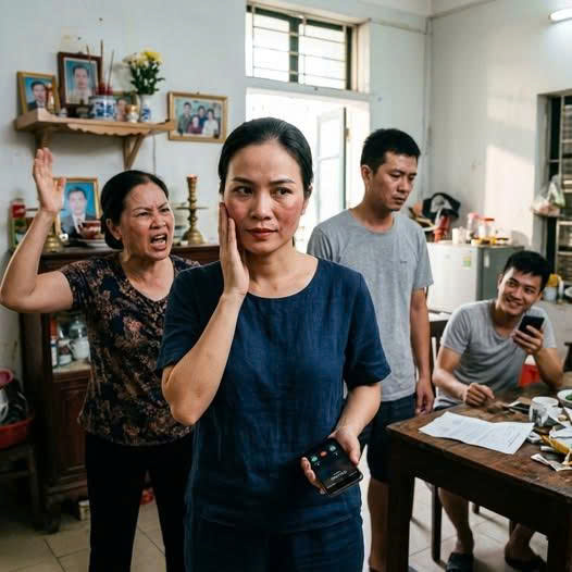 Cái tát không đau bằng ánh mắt khinh miệt của cả nhà. Chồng tôi đứng bên im lặng như tượng đá. Không một lời can, không một cái nhìn bênh vực. Nghĩa nhún vai như đang xem kịch.